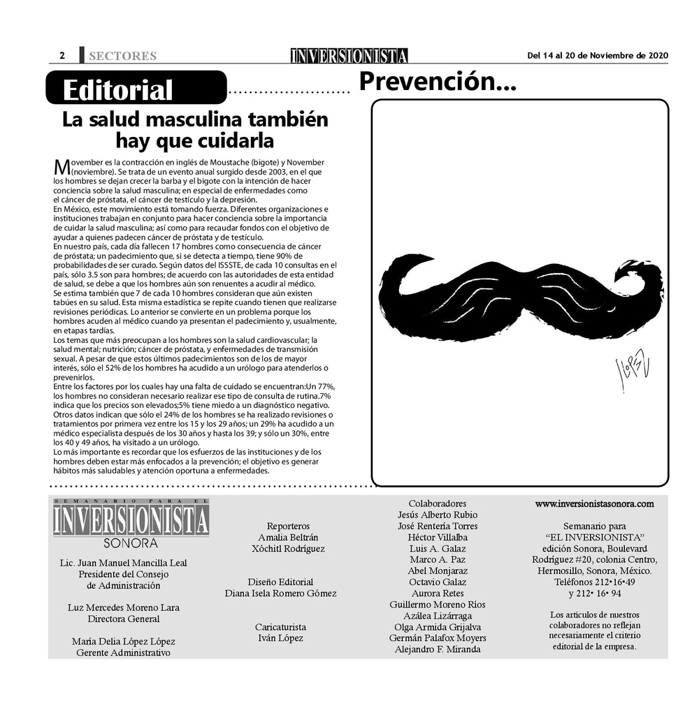 14 Nov # POR LA SALUD MASCULINA